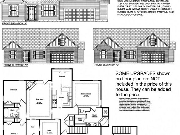 Reba floorplan- 3 BR, 2 BA with bonus room. Master with large walk-in closet and tray ceiling, master bath with double vanity, granite countertops and separate shower, eat-in kitchen with granite countertops and site built cabinets, formal dining room, great room with tray ceiling, finished bonus room, and two0car garage.. Architectural shingles, sprinkler system in front yard, smooth ceilings and more. OPTIONAL ADD ONS (not included in this listed price)- Upgrade siding toBoard & batten, side lite windows at front door, fireplace, tray ceiling in dining room, raised bar in kitchen, brick profile, hardwood floors, etc. Photos of Homes and Floor Plans May Include Upgrades. Photo shown is of floorplan built previously and does show upgrades not included in this price. Construction stage- Lot has been cleared.