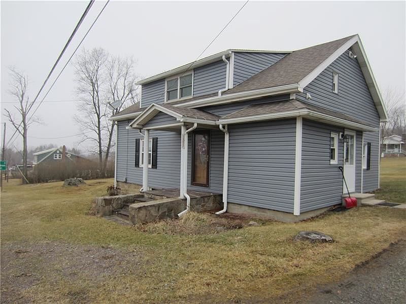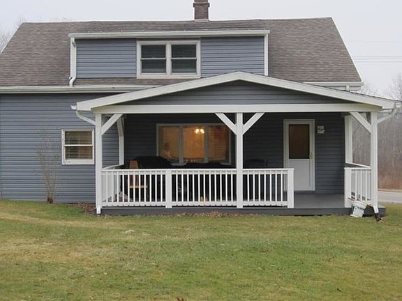 Charming home on 1.13 acres with a covered back porch. This 3 bdrm/2 bath home has many updates which includes new vinyl siding, doors, windows, boiler, water softener, oil tanks, well & septic. It also features an enclosed laundry area in the upstairs bathroom. There is a 10x18 outbuilding and it has a convenient circular driveway.