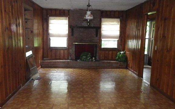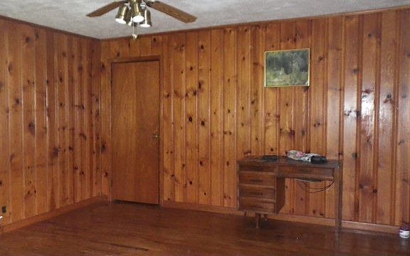 Great ranch with hardwood floors, 4 bedrooms, living room plus den area. Half bath once had a shower that previous owners took out. Plumbing is still there to make this a full bath. Large country kitchen with dining and fireplace. 2 streams, 3 acres, storage building, tons of fruit trees, and new roof. House is hooked up to public water, but there is also a well on the property.