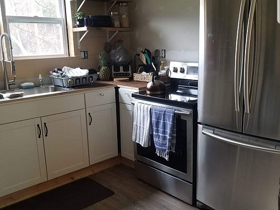 As is unfinished home on 3/4 lot. 720 sq ft. An 3000 sq ft 1880 grist mill is on property as well could be restored. New stainless refrigerator and glass top electric stove stays with properry. Finish the new construction to your liking.