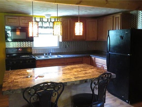 Very cute house. Totally remodeled on the inside. New kitchen cabinets, island, flooring, bathroom, sliding glass door. Must see! Heatilator fireplace in living room and wood burner in the basement. New electric hot water tank. Being sold "as is."