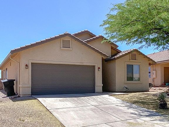 Located in Cottonwood Bluffs in Benson! Easy access to Ft. Huachuca & Tucson. Open concept 3BD/2BA/2-car garage all freshly painted and professionally cleaned. 1625 sq.ft. home with huge backyard with new landscape rock and unobstructed views! Kitchen off great room features easy maintenance laminate counters, breakfast bar and nook and convenient laundry location. Appliances include electric range, built in microwave, disposal, dishwasher, and refrigerator. Tiled entry, hall and all wet areas with professionally cleaned upgraded carpet in all bedrooms and great room. Split plan, master suite with double sink vanity, tile bath surrounds, and large walk-in closet. Ceiling fan in great room. Network wiring to Smart Panel in master closet. Move-in Ready!