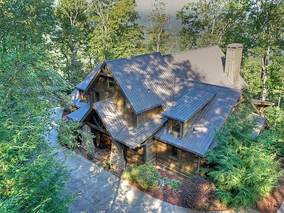 CUSTOM HOME BUILT BY KEITH SUMNER offering long-range mountain views from every level and a view of Blue Ridge Lake!! The incredible mountain estate boasts of custom stone entrance, post-and-beam architecture and offers 4 bedrooms each with a private bath, hardwood flooring throughout entire home, open greatroom w/stacked stone fireplace, master-on-main, custom stone countertops and showers, gourmet kitchen w/granite countertops, outdoor fireplace w/long-range view, outdoor kitchen area w/arbor, detached 2-car garage with walk-up unfinished storage area, fenced in back yard area, level concrete driveway, paved roads, underground utilities, gated community and located within minutes to downtown Blue Ridge in the Aska Adventure Area!! Check out the virtual tour for additional photos of this incredible estate!