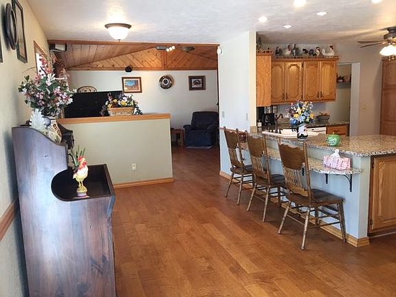 Beautiful, spacious hilltop ranch home on 21 mixed acres for sale at the edge of town! With gorgeous woodwork throughout, this open home offers 3 bedrooms and 2 baths on the main floor with potentially more bedrooms and 1 full bath in the basement! Highlights include granite kitchen, oodles of custom oak cabinets, beautiful maple flooring, spacious master suite, a grand office/room with great windows, lots of finished space in the basement for him/her/the kids to spread out, an over-sized attached garage, beautiful Trex decking with additional decking around above-ground pool, lovely 12x20 screen-window building, 60x40 shop, 22x38 dog run, 35x45 garden space with add'l strawberry bed, wet weather creek.