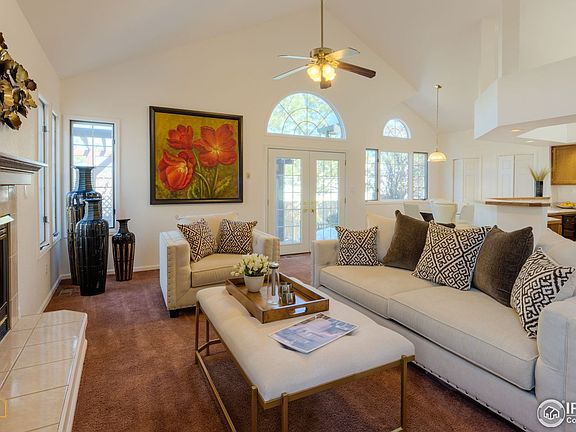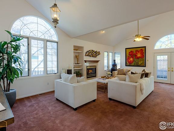 Sparkling 2-story patio home with main floor master suite in secluded East Boulder neighborhood. Offers bright open design with vaulted ceilings & clerestory windows. Inviting spaces include great room with fireplace opening to private deck, separate dining room & lovely kitchen with breakfast nook. 2 bedrooms upstairs, plus loft & storage area. Basement finished with rec room & guest suite. HOA includes front yard maintenance & snow removal. Fresh paint. Just move in! Ready for buyer upgrades.