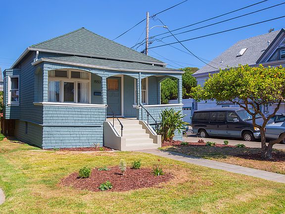 This charming bungalow is a great alternative to condo life: no HOA Dues, 2-car garage, private backyard, formal dining room, spacious front porch, breakfast nook w/ views of sailboat masts & Oakland Hills. Newer roof & furnace, updated electrical & plumbing. 6’ high basement provides even more potential!