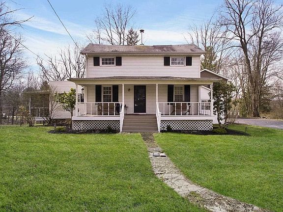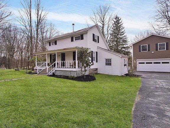 Adorable antique home with rocking chair porch on 2 acres and oversized 2 story garage. Freshly painted and new carpet, this 3 bedroom (legal 4 bedroom), 1.5 bath home is a real charmer. Some updates include septic system, HW heater, well pump, 200 AMP service with all new receptacles and more. Spacious rear deck for entertaining and large backyard slopes to creek along back of property. Enormous 2 story detached garage - 960 square ft with unfinished bonus room with roughed electric - offers potential for more living space, storage and more. This is a perfect space for a contractor, landscaper, in home business or numerous other possibilities. Also 2nd driveway comes in from All Angels (see aerial map).