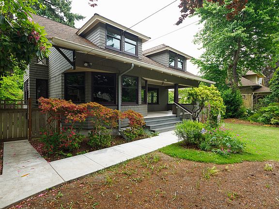 This craftsman bungalow perfectly placed on almost a third of an acre in Sellwood is a testament to the enduring allure of early 20th-century craftsmanship. The warm natural woodwork, wood floors, and original details evoke a sense of history and artistry, creating an atmosphere of nostalgic beauty. The welcoming front porch invites you to step into a world of charm and character. Its thoughtful design and cozy ambiance make it the perfect spot to relax and enjoy the surroundings, capturing the essence of the craftsman architectural style. The updated kitchen is a harmonious blend of classic design and modern functionality. With a custom-designed eating area that complements the architectural elements of the house, it not only enhances the overall aesthetic but also allows for abundant natural morning light, creating a delightful space to start your day. Preserving the historic beauty of this craftsman bungalow was a priority, and the meticulous attention to detail shines through. While the original features have been carefully maintained, the mechanical aspects have been thoughtfully updated. Modern electric, plumbing, HVAC, and seismic strapping and foundation work ensure comfort, safety, and convenience while seamlessly integrating with the home's timeless appeal. The yard and setting are a rarity in the city. The park like lot measures 100 x 125 feet, and boasts mature tress, native plantings and raspberries. More than just a classic and historic home, the 900 SQFT detached art studio/woodworking/makers space was built to compliment the house and garage aesthetic, while offering big, open and light-filled spaces inside. Features include a half bath, skylight, full heating and cooling, plumbing for a kitchen, and 1/2 of the building has plywood backed sheetrock walls for hanging art. All of this in the heart of Sellwood with a 95 walk score and 99 bike score. This is a very special opportunity to be only the 4th owner of this 1905 home. HES 3 [Home Energy Score = 3. HES Report at https://rpt.greenbuildingregistry.com/hes/OR10215561]