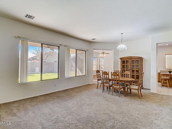 * Wonderful 3 Bedroom with Den, 2 Full Bath, Single Level Home * 10' Flat Ceilings T/Out* Formal Living/Dining with Great View of the Grassy Backyard * Den could be 4th Bedroom - Currently Open to Living/Dining * Large, Eat-In Kitchen with Island has Stainless Appliances, 42'' Natural Oak Cabinetry, Solid Surface Counters and Extended Buffet Counter and Cabinet Area * Large Family Room is Open to Kitchen Area and Has Views of Formal Living/Dining * Large Secondary Bedrooms * Double Sinks at Hall Bath * Oversized, Split Master with Walk-In, Separate Shower & Tub, Double Sinks, Sep Toilet and Large Walk In Closet * Large Laundry with Washer/Dryer and Freezer * Covered Patio * Split 3 Car Garage * Gas Water Heater & Heating * Grassy Front and Back Yards * Fresh Exterior Paint * Come See It!