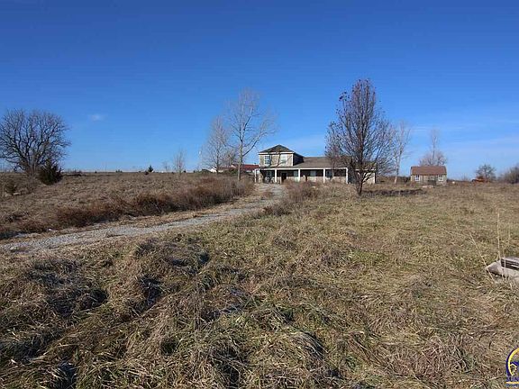 Take a look at this 20.85 m/l acre lot less than 15 minutes from Topeka. This would be the perfect build site or weekend getaway for trail riding and camping. The land is set up perfectly to have a long driveway leading to your home, overlooking wonderful views. There is plentiful deer sign on this property and nice habitat for upland birds. Small pond and nice grass that will cater to your livestock needs or compliment a hobby farm. Home is not livable but could be renovated into nice workshop or removed.