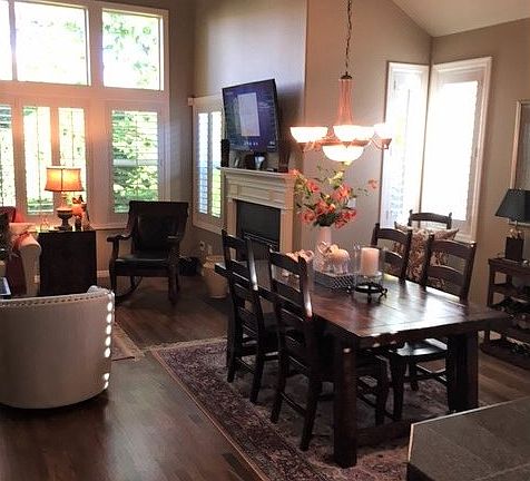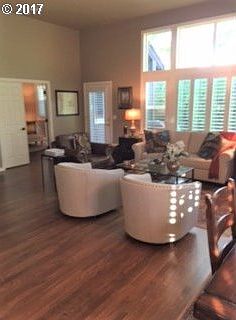Popular Oxford design. Beautifully maintained with plantation shutters and decorator colors throughout. Extensive hardwoods, stainless in kitchen with granite counter tops. New carpet in den and extra bedroom. Terrific water feature in front of house. Spacious family room with high ceilings and fireplace. Pantry in kitchen. Large laundry room with sink and storage closets. Large garage with abundant storage above.