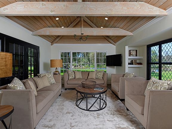 Exquisitely remodeled in 2018, this single level ranch combines the comforts of a traditional farmhouse with contemporary finishes and clean lines. Extensive improvements include Oak flooring, quartz countertops, brand new beautifully appointed kitchen, all new bathrooms and updated lighting. Privately set on almost 4 acres within a gated community, this expansive property with freshly landscaped grounds offers plenty of room for horses and golf course views over a private pond with adjacent pool and spa.