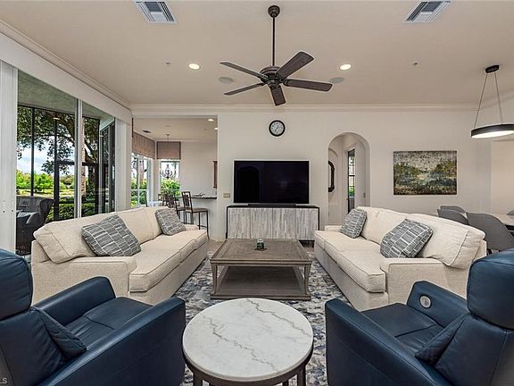 Secure your vacation home now for this winter! Incredible lake and golf course views overlooking the 7th hole of the South Course at Mediterra. This lightly updated coach home is being offered turnkey furnished including a whole house sound system for your immediate enjoyment. A new A/C was installed July 2024. Conveniently located just a short walk to the Monterosso clubhouse pool/spa, outdoor grill, and mailboxes. There is ample guest parking just across the street as well. The award winning Mediterra Golf and Beach club offers multiple levels of membership. The newly renovated Mediterra Beach club is now open! Buyer to assume CDD.