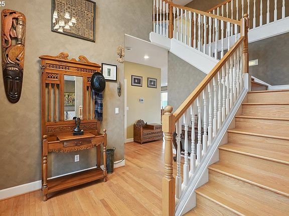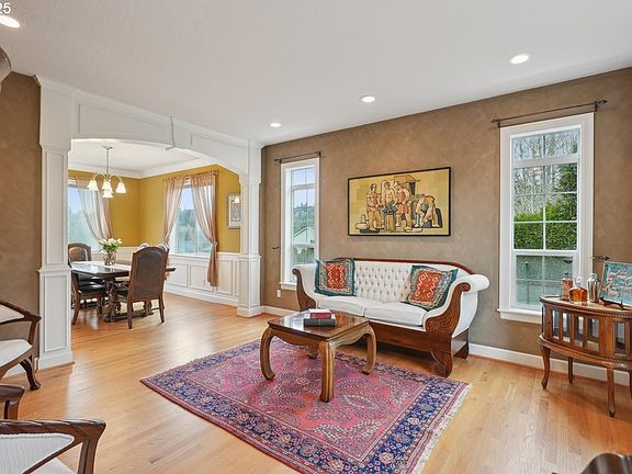 Offers Received. This beautifully maintained home is located in the coveted Hawthorne Ridge area of Pleasant Valley, offering easy access to inner Portland & proximity to all of the shops, restaurants, & attractions in Happy Valley. The main floor offers hardwood floors throughout & formal living & dining rooms that lead to a designer chef's kitchen complete with an Ilve Majestic range. The open concept kitchen connects to a spacious light-filled family/media room with a slider to a deck that has a retractable awning and provides gorgeous valley views. The grand entry leads to the upper level, which consists of 4 bedrooms, a laundry room, & additional storage space. The primary suite has heated floors, a walk-in shower & closet, & a soaker tub with a picture window view of a serene tree-filled mountainside. The fourth bedroom currently serves as a library/office and the double garage and lower level walk-in crawlspace provide tons of storage. This home offers many custom upgrades & finishes throughout, including central vac, smart lights, Hunter Douglas shades, B-hyve smart irrigation, & is wired for surround sound. There is additionally exterior landscape lighting that leads from the deck to and surrounds the lower patio for peaceful nights around the built-in firepit. The owned solar on the new roof, EV charger in the garage, along with other energy-efficient updates give this home an energy score of a perfect 10! The house also sits right across from the path that leads to the private community park & playground. Come see why this home checks all of the boxes! [Home Energy Score = 10. HES Report at https://rpt.greenbuildingregistry.com/hes/OR10235328]
