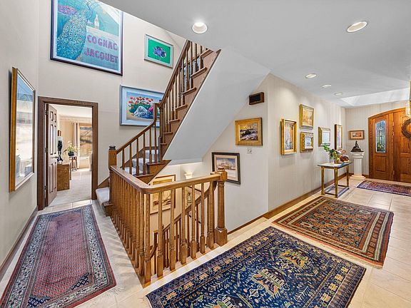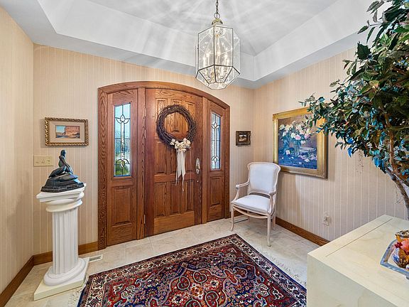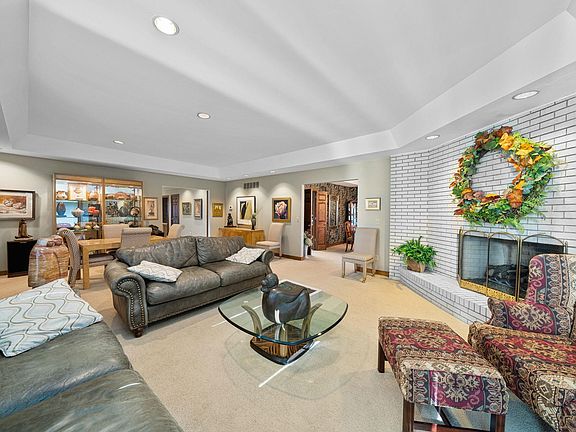 Elegant custom built, one owner, full brick ranch at the end of the cul-de-sac in Quail Ridge South located in Penn-Harris School District, on a large lot that is beautifully landscaped for privacy and includes wooded pathways and a multi level pond. Perfect for entertaining or quiet relaxation. The main level has high ceilings, great room with fireplace, large windows, formal dining room with access to a cedar deck, library with a wet bar, first floor primary suite which includes access to a private courtyard, a soaking tub and walk-in shower. Gourmet kitchen with newer stainless steel appliances, large island, and a nice eat-in area with access to a covered patio. The lower-level walkout has two bedrooms, full bath and a family room with a fireplace. Workspace is perfect for hobbies, exercise room or storage. On the top level is a bonus room or flex area with a second half bath. Don't miss this beautiful home! Just minutes to Knollwood Country Club! Close to the University of Notre Dame, Restaurants, Shopping and Hospitals.