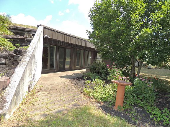 Unique sustainable lifestyle home or vacation retreat in the heart of the Hocking Hills. This earth sheltered (underground) home features an open kitchen, dining & living area with lots of natural light, greenhouse entry and energy efficiency! A master suite and 3 additional bedrooms/sleeping rooms, full bathroom & laundry room complete the 1560 SF of living area. The landscape features open space for garden or small livestock, fencing and some woods. There is a detached garage and 3 well maintained pole buildings. The largest building has ample 220 electric, heat source and concrete floors. To supplement natural radiant heat and cooling effect of the underground structure, there is a wood burning stove and whole house generator. Additional 20 ac. available by separate transaction
