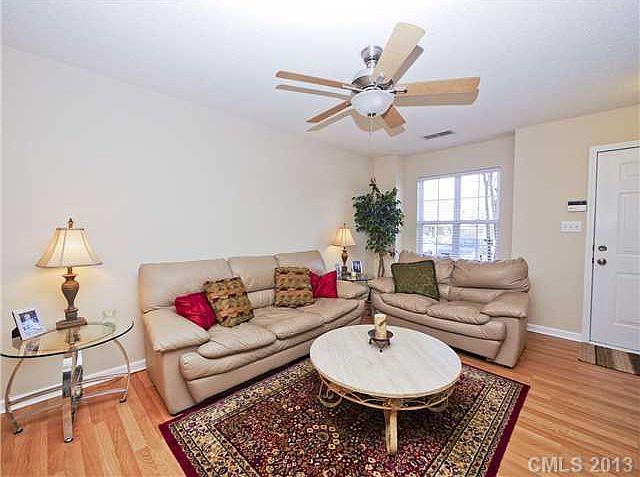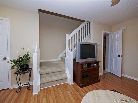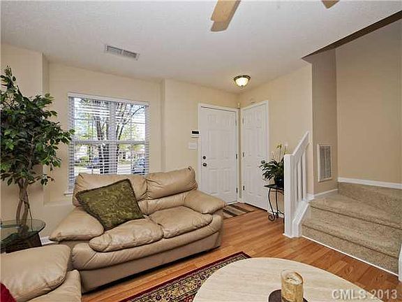 Adorable move-in ready townhouse at a great price! Lots of recent updates... fresh neutral paint, new lighting, blinds, ceiling fans, brushed nickel fixtures & hardware throughout. Light wood laminate flooring on 1st floor & frisee carpet upstairs. Vaulted ceiling and two closets in master bedroom. Privacy fenced back yard. Outdoor storage closet. Community pool. Great Ballanytne location!
