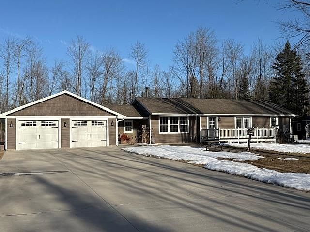 Exceptional "Up North" home on 1.6 wooded acres. It's all here..farmhouse style decor abounds. 3BD, 2BA, 1st fl laundry, attached screened porch w/enclosures. Open concept split bed design. Private master suite w/walk in closet, double vanity & walk in shower. Att 26x30 garage. Pole bldg w/electric for toys 32x40. 2 10' doors. Pellet stove, newer furnace & AC. Newer windows, siding & roof. Whole house generator, finished she shed w/electric. Partially fenced yard for your pups. 200 amp, kitchen has walk-in pantry & center island, SS appliances, large sun deck off dining area. All this on quiet cul-de-sac. Full basement, newer septic. Deep well. natural gas service, concrete driveway to house. Blacktop driveway to pole bldg. Broker owned.