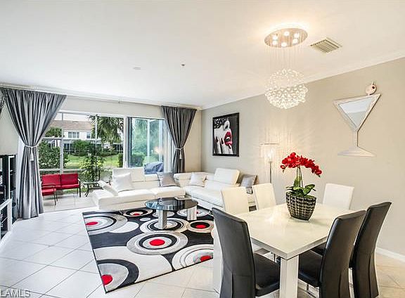 H.9003 - Beautiful Milano Townhouse located in North Naples! This lakefront home offers 3 bedrooms and 2.5 bathrooms. The home has many features including an attached garage, private screened in lanai, a spacious master bedroom with a walk in closet, dual sinks in the master bathroom, volume/vaulted ceilings, upgraded flooring, large tile on the diagonal, crown molding, and new stainless steel LG kitchen appliances. Conveniently located next to guest parking, community amenities, and is just minutes to the beach, shopping, schools, restaurants, and more!