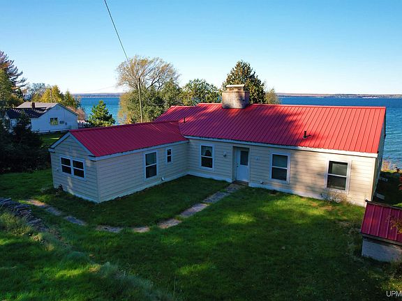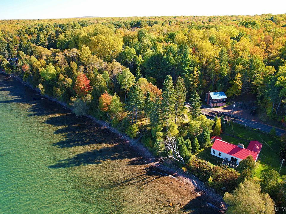 Own an exceptionally large slice of Lake Superior shoreline—over 550 feet on Keweenaw Bay—set on 11.58 wooded acres just north of L’Anse. Frontage of this scale is rare in the Northwoods and offers wide-open water views, room to roam, and multiple potential build or improvement areas. The existing structures are fixer uppers and are being offered in as-is condition, creating an opportunity for buyers, contractors, and investors who want to renovate, customize, or re-envision the site. The main home is a 1,276 sq ft ranch with a wood-burning fireplace, picture windows facing the bay, and a deck to take in the lake. The floor plan includes a primary bedroom with lake views, two additional bedrooms, a centrally located full bath, a functional kitchen with adjacent dining area, a large laundry room, and a practical entry/mudroom. While the home has a solid layout, it will require repairs and updating before move-in. Across the road, the unfinished 643 sq ft guest house sits above a garage and currently has its own electric and gas service and is believed to have its own well (buyer to verify). Planned spaces include a living area, kitchen, two bedrooms, and a bathroom—ideal for completing as a guest retreat, rental, studio, or additional living space once finished. As with the main home, the guesthouse needs significant work. The shoreline is primarily a small bluff, with a natural spots where you can work your way down to access the water—great for launching a kayak or enjoying the waves. Whether you keep the existing footprint and renovate or pursue a larger vision, this property delivers extraordinary Lake Superior frontage, acreage, and flexible improvement potential in a coveted Upper Peninsula location. NOTICE: All information believed accurate but not warranted. It is the buyer’s obligation to inspect the property and verify all information; buyer assumes all risks for any inaccuracies. Tax information is subject to change. Taxes are not 0. References to square footage, lot size/dimensions, utilities, and age are approximate. Equal housing opportunity.