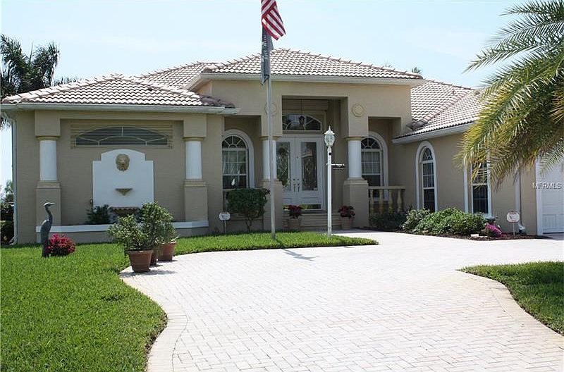 Gorgeous custom built situated on sea-walled lot with no bridges and direct access to the Gulf. Exquisitely designed with columns , arches, crown molding and a variety of ceiling styles. Gracious 8' doors with custom trim. The gourmet kitchen boasts custom solid wood 44" cabinets, granite counters, mirror backsplash with lighting, wine rack and SS appliances. Tile throughout (except den) in varied sizes and designs. Huge master suite and bath with jetted corner tub, walk in shower, double sinks with granite and custom cabinets. The sitting area opens to the lanai and pool through 8' sliders. Dining room has travertine flooring and wainscoting. Den has 5/8" bamboo flooring, wainscoting, custom cabinet with granite, and glass shelving with mirror background. Living room opens to lanai and pool via three 8' pocket sliders. Family room has 3 sliders to pool. Large 3 car garage has workbench and many cabinets for storage. The exterior portrays a circular paved drive and mature landscaping. The lanai, heated salt pool and spa are paved. The 60' composite dock has a 10K boat lift, fresh water, electricity and fish cleaning station. Hurricane shutters protect the building. This home has proximity to Boca Grande, numerous golf courses, beautiful beaches and world class fishing. Located midway between Sarasota and Fort Myers in beautiful southwest Florida.