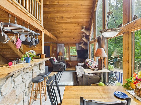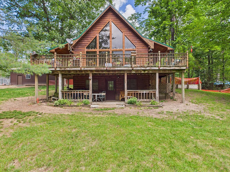Wilderness Retreat - Full Log Home on 10 Acres. Enjoy year-round living in this private log home surrounded by rolling hardwoods and pines. Molvy Creek runs through the property, drawing abundant wildlife and offering endless outdoor opportunities—hunting, fishing, snowmobiling, and skiing. The home features 3 bedrooms, a loft, and a mostly finished walk-out with rec room & non-conforming bedroom. West-facing windows provide natural light & warmth, while hardwood, tile, and carpet flooring add charm. Relax on the large deck or in front of the wood or gas stove. A 24'x48' pole barn provides ample storage, and the kitchen appliances are just 5 years old. The perfect up-north escape! Private road very well maintained by a neighbor via $120 HOA fee. Dog kennel negotiable.