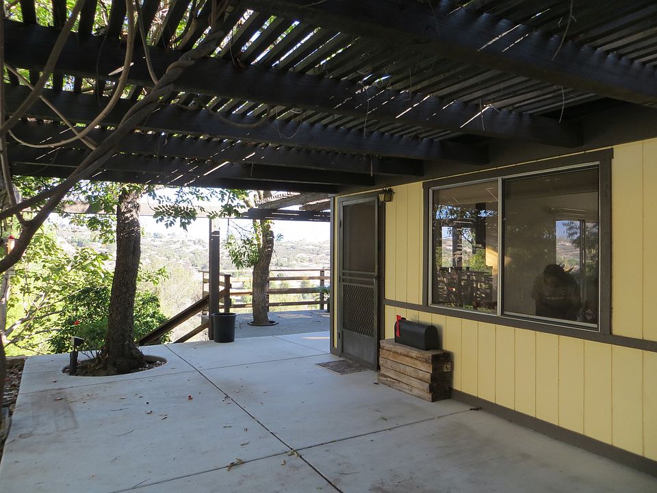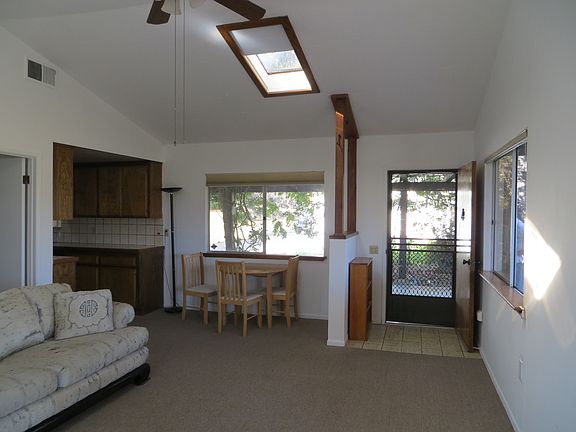 Small guesthouse with large wood deck overlooking part of the valley and hills! Bedroom has a walk-in closet and a door connecting to the full bath. Fully tiled kitchen to include a dishwasher. Lots of cupboard/storage space. Skylights with shades, ceiling fan. Bright and airy. Wood burning stove. Sliding glass door leading onto the wood deck. Separate area above house for BBQ's or just sitting. Additional restroom close by. Laundry room is outside in an enclosed area (see photo) Owner says home is large enough for ONE person. Tenant pays electric, propane, internet, TV. Owner pays water/trash. NO SMOKERS. Mature landscaping. Outside security lights. Available now! Credit report required. Term is month to month. Small pets upon approval (under 25 pounds) with additional deposit required.