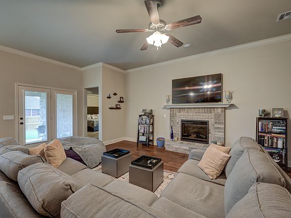Beautiful 3 bedroom 2 full bathroom home in Anderson Estates! Home offers tiled foyer with 14ft ceilings, open floor plan living room with hardwood flooring, brick fireplace, crown molding and kitchen with soft close Alderwood cabinets, stainless appliances with top of the line electric induction range, granite counters, breakfast bar, dining area and pantry that is also a storm shelter. Master suite with trey ceiling, double vanity, jetted tub, tiled stand up shower, and walk-in closet. 2 more nice sized bedrooms and hall bathroom. Step outside & enjoy the huge 21x13 covered patio inside the new privacy fenced back yard. Home warranty is also included for that extra peace of mind. Schedule your private showing today!