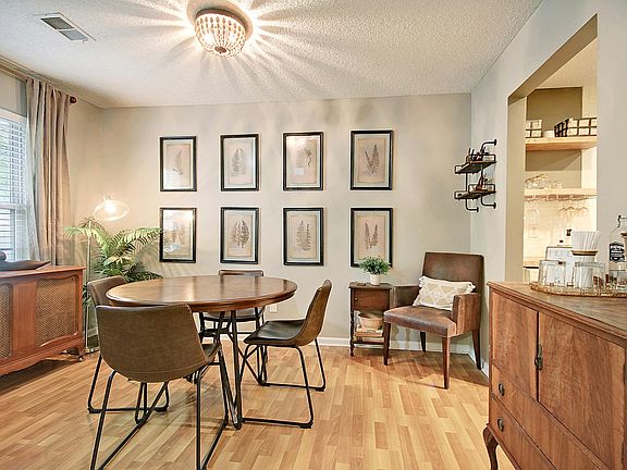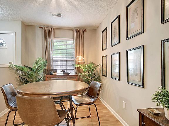 This is the one that you have been waiting for! 1554 Blaze Ln is full of unique upgrades that make it feel like a private retreat. Upon entering, you will notice the low maintenance laminate flooring and fresh paint throughout. The kitchen has been completely updated with a tile backsplash, floating shelves, beautiful butcher block counters and a new counter-depth refrigerator. Both bathrooms have new vanities, light fixtures and upgraded faucets. As you enter the light-filled family room and owner's suite, you will notice the soaring ceilings and unique wall paper accents that make the rooms rich in character. The owner's vanity area doubles as a flexible workspace. New wall accents and built-in storage have been added to the bathroom and walk-in closet. Even the laundry room has style with its unique wallpaper and shelving. At the back of the house you will have your choice of entertaining on the screened in porch or outside under the stars. The patio has new pavers and artificial turf that have been added to create a tidy space that is also low maintenance. It's the perfect spot to enjoy a glass of your favorite beverage and sit by a firepit on a cool night. Don't forget to peek outside the fence and enjoy the peaceful view of the pond. Recent energy efficient upgrades include a tankless water heater and solar panels to defray energy costs. This fee-simple townhome lives like a single family home. You have all of the conveniences of being a short drive to downtown Charleston or Folly beach while enjoying the low maintenance aspects of having a one-level home that is NOT in a flood zone. Schedule your showing today. This property will not last long!