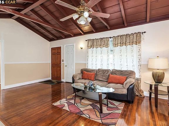 Beautifully updated rancher.Expended w/o permits to 3Br+office. Detached garage converted into 1Br unit.Open floor plan features formal dining, spacious LR w/open beamed ceiling, brick fireplace. Remodeled kitchen w/granite counters,hardwood floors, newer windows, RV parking, yard w/fruit trees.