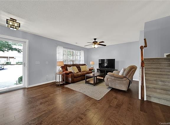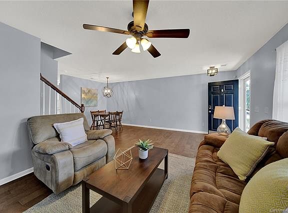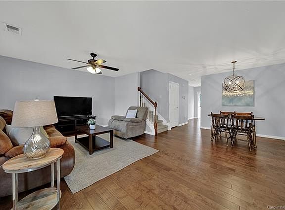 Welcome home to this rare find 1,950 sq. ft townhome featuring 4 bedrooms, 3.5 baths, and a fully finished walk-out basement with a second living area/in-law suite. Main level offers the perfect entertaining space with an open kitchen, spacious living area, half bath, and attached deck for summer grilling. The private basement includes a large second living area, full bath, and bedroom with sliding glass doors opening onto paved patio. Recent updates include new engineered hardwood floors on main and fresh paint. Two dedicated parking spots in front of home with ample visitor parking available. Super convenient location just minutes from I-77, shopping, and restaurants. This one won't last long!