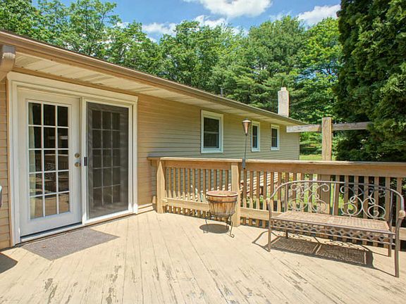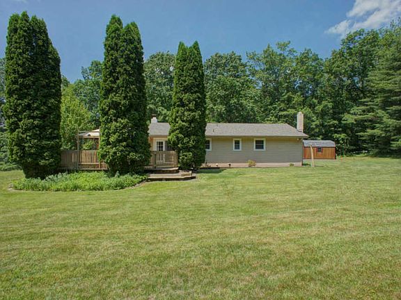 Enjoy the Peaceful Setting of this Beautiful 3 Bedroom Ranch Home in Move-In Condition Offering Very Large Flat Yard with Spacious Private Deck Perfect for Entertaining! Words Cannot Describe How Beautiful It Is Sitting on the Deck Surrounded by Mature Trees! Upon Arriving You will be Greeted by a Circular Drive with Great Curb Appeal! Enter into the Living Room w/ Crown Molding & You Are Drawn to the Brick Fireplace w/ Pellet Stove Insert Perfect for those Cold Winter Nights & Keeping Your Utility Costs Very Low in Winter! Light & Bright Kitchen and Dining Area Opens to the Large Deck! Three Very Nice Size Bedrooms & Remodeled Bathroom Are Awaiting Your Move-In! Basement is Partially Finished Awaiting Your Final Completion! Garage, New Architectural Shingle Roof in 2016 and Newer Appliances Complete the Package!