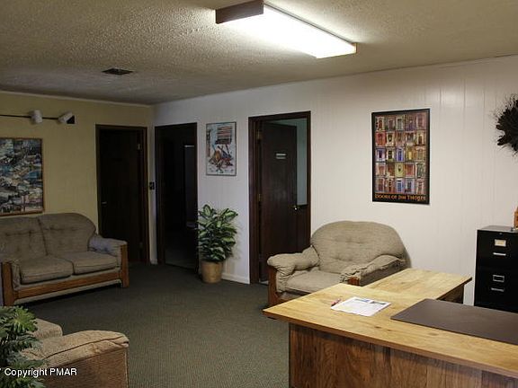 This RESIDENTIAL/COMMERCIAL property sits on 3.5 ACRES along State Route 903. 3 miles from new EZ-Pass 476 Turnpike Exit. GREAT possibilities for this 3740 sq. ft. building, featuring a kitchen and 2 full bathrooms and another room has plumbing ready for a second kitchen!! The truss roof system allows interior walls to be reconfigured and has no load bearing walls. This property also features a 2184 sq. ft. garage with a storage area, bathroom and office.
