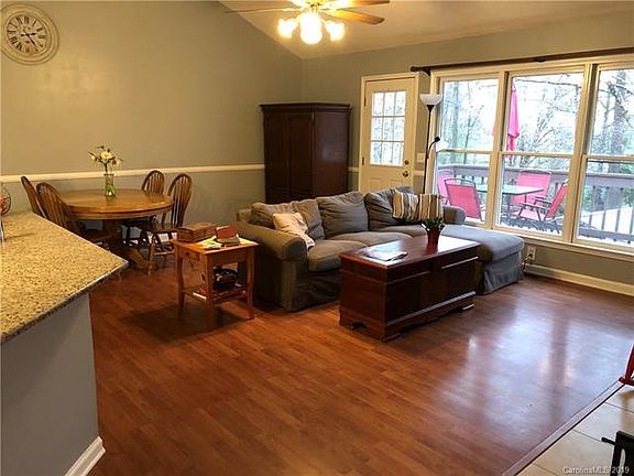 Adorable, traditional ranch home, on over half acre wooded lot, minutes from Lake Wylie. Tucked away at the end of the street in a quiet neighborhood, great place to call home. Open plan with living, kitchen and eating area overlooking wooded back yard. Granite countertops, vaulted ceilings, cozy fireplace. Lots of natural light, with back deck for outdoor living. Wood floors throughout w/ tile flooring in kitchen and bathrooms. Master suite with walk-in shower, dual sinks, vanity w/ drawers and separate linen closet. Detached storage shed, storage in crawl space, and storage in attic (pull down stairs). Low SC taxes and no HOA!
