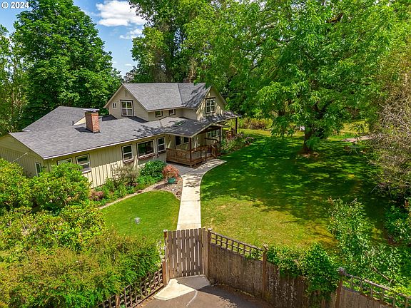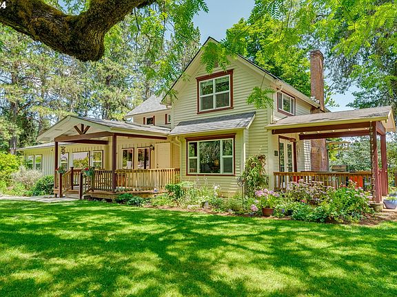 Experience the perfect blend of original farmhouse charm and modern updates in this timeless 5-bedroom, 2-bath property on 2.56 acres just minutes from historic downtown McMinnville and minutes to Yamhill County's Miller Woods. This home features a main floor with 3 bedrooms, including the primary suite and two additional bedrooms upstairs with a loft for versatile living spaces. The main floor living area showcases a spacious kitchen with an island, open-concept to family room, abundant storage, walk-in pantry, plentiful built-ins, and a fireplace. The Living Room has tree house views, dining area with window seat and access to the covered deck for summertime meals. Enjoy multiple outdoor living spaces: a large deck, two covered porches, garden area, yard, flower gardens, established landscaping, east facing hot tub with territorial views, year-round creek and pond. An oversized detached two-car garage with a lean-to storage area is steps from the home. A middle level area has been developed for RV parking with water/electric available, turnaround, drive through access and potential site for an additional outbuilding. A barn with lean-to for livestock or storage/shop space is located at the base of the property. Nearly an acre of pasture that is mostly fenced is ready for horses or farm animals. Enjoy country living just a short and beautiful drive to the property from McMinnville on paved roads with dramatic Mt Hood views along the way.