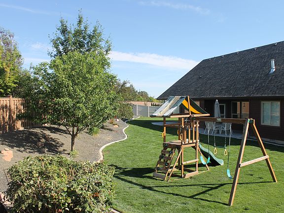 Beautiful CUSTOM 2,343 sq ft, 3 bedroom, 3 bathroom, with large bonus w/ closet that could be converted to a 4th bedroom, open floor plan & spacious 3-car garage. Vaulted ceilings in the great room with a stunning corner fireplace. Kitchen has custom cabinets, double ovens, hardwood floors and built-in gas stove top. Master boasts peaked coffered ceilings with accent lighting, and bath with corner tub, dual vanity & walk-in closet. Split floor plan with Jack & Jill bathrooms. High efficiency furnace, two 50-gallon water heaters, double covered patios, .28 acre lot with full fencing, sprinkler system, and landscaping. PRICED TO SELL.