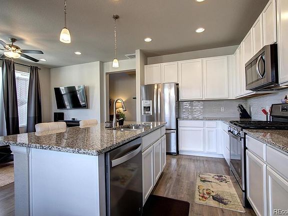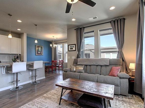 Time to fall in love with this beautiful 3 bed 3 bath townhouse in Arvada! When you walk in you are greeted with 9 ft vaulted ceilings, natural light, and spectacular finishes. This home boasts a bright kitchen with ample storage and counter space. The white cabinets, beautiful back-splash, and stainless steel appliances make this kitchen shine! The spacious living room, dining room, powder room (1/2 bath) and back patio are located on the main floor. Upstairs, there are 3 bedrooms with 2 full baths, and a loft that is perfect for entertaining or relaxation. This is the largest floor-plan offered in the complex! Upstairs you will find a large master suite with a large 5 piece master bath to relax in, a large walk in closet, and your very own private balcony to watch the sun set! Down the hall and past the loft there are two additional bedrooms and a full bath. This home also comes with a 2 car attached garage. Easy access to I-70 makes getting to work and the mountains a breeze! HOA features a beautiful pool that is just a short walk from the home. This home is steps away from the popular Farmers Highline Canal Trail, great for outdoor activities. Westwoods golf club. Convenient location with walking distance to Westwoods shopping center!