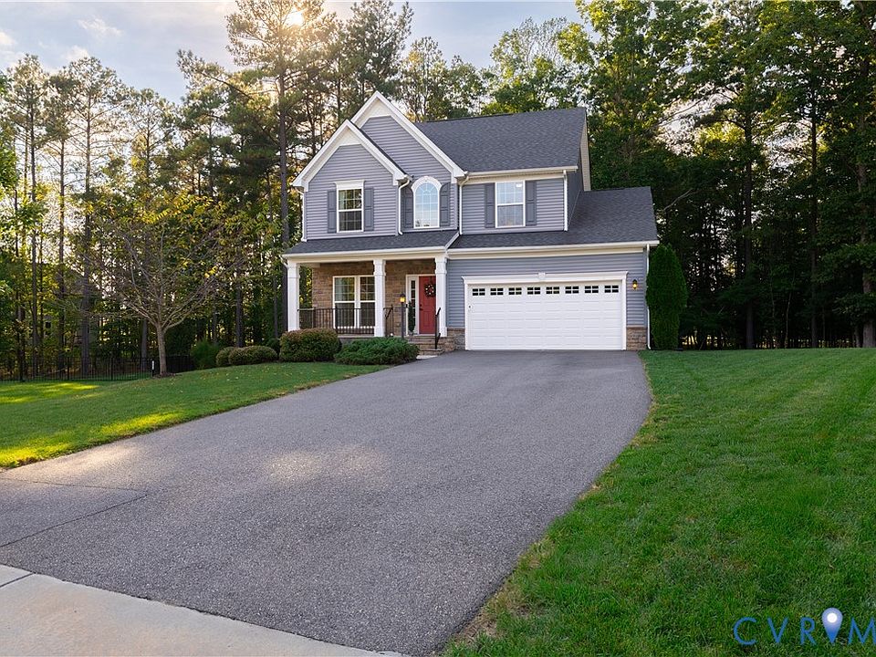 Welcome to this beautifully designed home offering three spacious & carpeted bedrooms, two full baths & a dedicated office/flex room that could easily be converted into a fourth bedroom. With over 2,100 sq. ft. of living space, this home blends comfort, function, style and charm. The interior highlights include an owner’s suite which makes for a true retreat with a large sitting area, walk-in closet, and private en-suite bath. The ensuite bath is tiled with a stand alone shower and both handheld and traditional shower heads, separate soaker tub, and double vanity. In addition, bedrooms two and three are generously proportioned with ample closet space. The office/flex room is perfect for working from home, crafting, or is easily converted into a 4th bedroom w/ the addition of a closet or armoire. Downstairs boasts an open concept living area where the family room flows seamlessly into the kitchen and bright morning room allowing for an ease of conversation and entertaining. The kitchen features a center island with breakfast bar, stainless appliances, and a large walk-in pantry. Up front upon entry is a formal living room which is a great option for gatherings, a playroom, or quiet retreat. All interior appliances and smart home thermostats included! The exterior upgrades include a front with partial stone and full porch which add elegance and warmth to you and your guests upon approach. The two car garage includes storage space, driveway that can fit up to four cars, automatic garage openers and a keypad entry. The front & back yard have in-ground irrigation system for easy lawn care and lush landscaping. A 12’ x 16’ Trex deck is ideal for outdoor dining and entertaining. One of the best parts is that this is one of the largest homesites around and within Harpers Mill with almost half acre of land and woods at the end of a cul-de-sac! This home delivers flexible spaces to fit your lifestyle, along with modern upgrades that make it move-in ready. Conveniently located near schools, shopping, and commuter routes!