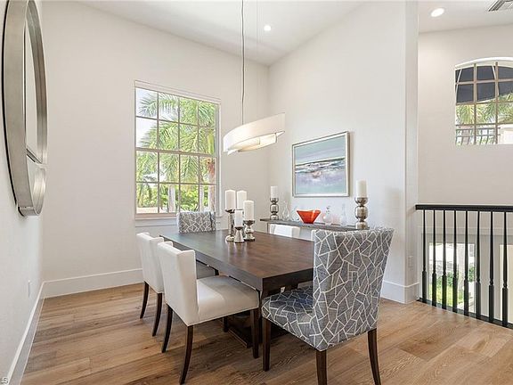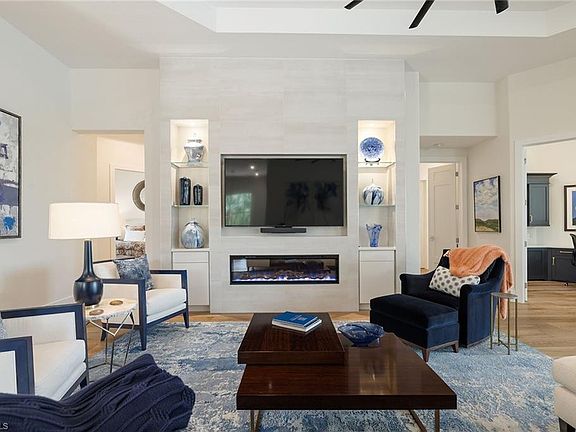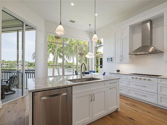 This beautifully renovated home is a true masterpiece, offering breathtaking southwestern lake views that set the stage for a tranquil and luxurious lifestyle. As you step through the grand entrance, you are greeted by a stunning staircase, featuring sleek treads, risers, and elegant railings that create an immediate impression of sophistication and style. Opening to the Great Room, the heart of the home is the expansive kitchen, which includes a convenient bar area and showcases modern cabinetry, a exquisite mosaic backsplash and quartzite countertops. This thoughtfully designed space perfectly balances contemporary aesthetics with timeless elegance, making it an ideal setting for both casual meals and entertaining guests. Equipped with top-of-the-line appliances and a convenient dry bar, this kitchen is every chef’s dream, allowing for seamless meal preparation and serving. Throughout the main living areas, the attention to detail is evident. New solid core doors enhance both privacy and sound insulation, while tasteful light fixtures illuminate the space with warmth and elegance. Rich hardwood flooring flows seamlessly from room to room, further enhancing the home’s sophisticated ambiance. The fireplace on the entertainment wall serves as a cozy focal point, inviting relaxation and comfort during cooler evenings. Retreat to the primary suite, a true sanctuary designed for ultimate comfort and luxury. This spacious haven features custom his-and-her closets, ensuring ample storage while maintaining organization. The 10-foot sliders open directly to the lanai, creating a seamless indoor-outdoor flow and allowing you to enjoy the serene lake views at any time. Additional features include LED lighting, Hunter Douglass window treatments and Hurricane Screens at Outdoor Living. Every detail of this home has been meticulously crafted, showcasing extensive upgrades that elevate its appeal. From the carefully chosen finishes to the thoughtful layout, this property stands out as a one-of-a-kind gem. In the award-winning community of Mediterra featuring two Tom Fazio championship golf courses, gel pickleball courts, Har-Tru tennis, state-of-the-art fitness and a private beach club. Enjoy convenience of your toes in the sand and golden sunsets at Mediterra's fully renovated private beach club along the Gulf of Mexico. Imagine arriving having your car valet parked and lounge chairs and umbrellas waiting for your arrival or set up upon request. With 10,000 square feet of space, the upper level offers indoor and alfresco dining, a full bar, swimming pool along with lockers and dressing areas for changing. Spend the day and enjoy dinner while watching the sunset in the distance. Discover Mediterra where you can have it all!