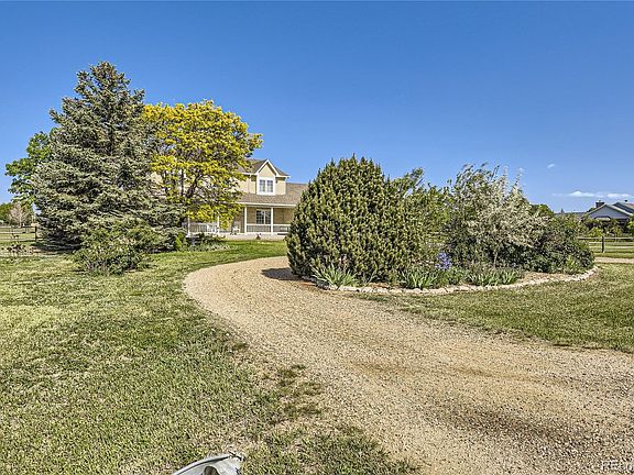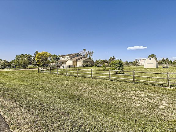 Idyllic country living awaits you in this elegant Broomfield residence, standing proud on 2.26 acres of lush land! Picturesque and inviting, an east-facing front porch is perfect for sipping your morning coffee while you admire magnificent sunrises. Through the inlaid-glass doorway, discover a grand foyer that welcomes you with soft, warm tones and high ceilings. Low-E casement windows gleam abundant natural light on gorgeous hickory floors in the open-concept living room and dining area. Your inner chef will be thrilled with the custom, fully renovated kitchen, featuring new Quartz countertops, stainless steel appliances, luxurious shaker soft-close cabinetry, a stylish subway tile backsplash, and a central island perfect for entertaining guests. Red oak hardwood flooring continues to the cheerful breakfast nook, brightened by a delightful bay window. Nothing says relax like spending leisurely evenings in the nearby family room where vaulted ceilings soar overhead, and Pella French doors allow a seamless indoor-outdoor flow. Retire to the comfort of four private retreats, including a generous primary suite with an oversized walk-in closet and a luxurious 5-piece ensuite with Kohler cast-iron fixtures. A versatile office can be utilized as a 5th bedroom. High-speed fiber optic cable is available. Enjoy sweeping mountain panoramas in the breathtaking outdoors, highlighting sprinkler-maintained landscaping, vibrant foliage, and a variety of perennials. Zoned A-1 with no HOA restrictions. You'll also have an unfinished basement with roughed-in plumbing, a laundry room, a detached garage/barn, and an attached heated 3-car garage with 220 power and 8-foot doors. This home provides a perfect balance by combining the tranquility of country living with the proximity to city amenities. Located just minutes away from various conveniences such as Orchard Mall, Denver Premium Outlets, Target & Costco, and quick access to E-470 & I-25.