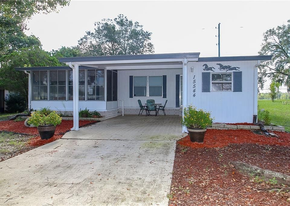 Cute & quaint mobile home in the fantastic 55+ neighborhood of Brookridge. This house is in excellent condition, and move in ready. Super cute kitchen even has the soft close drawers. 2 bedroom, 2 full bathrooms, dining room area, living room. Enclosed lanai, car port. This neighborhood offers golfing, community pool, tons of social activities, manned entrance. You own the land