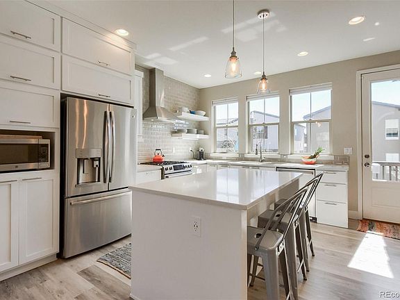 Your search is over! This impressive 4 bedroom 4 bathroom home in desirable Solterra has everything you're looking for! As you enter the home you will notice the gleaming floors, natural sunlight, 9' ceilings and open layout. As you continue to the kitchen you will be enamored by the stainless steel appliances, white cabinets, gas range, delightful backsplash, open shelving concept and quartz countertops. Don't miss out on the large open pantry as well! Upstairs you will find the spacious primary bedroom with a trendy barn door and en suite bathroom that includes a walk in shower, double sink vanity, plentiful closet space and quartz counters. The upstairs loft is perfect for a workout area or a reading area with a view of the mountains. The basement is the ultimate space for family movie nights, a mancave, a ladies lair or relaxing nights to unwind. The basement also has a bedroom, bathroom and ample space for a kids playroom or extra room for your choosing. The backyard comes with space for kids, pets and a great deck to enjoy Colorado summer nights. The home also includes a tankless water heater, humidifier, TV antenna for the whole house, pre-wires for surround sound and a shared driveway which has been perfect for neighborhood hockey games, riding bikes, (neighbor has kids 5 and 7) and also means half the work for snow removal and half the cost of any driveway repairs if ever needed. We aren't done yet.... The neighborhood has a large clubhouse, playgrounds, a tennis court, infinity pool and paths with miraculous views! With the low easy maintenance of this home you can enjoy the amazing surroundings of Red Rocks Amphitheatre, quick access to skiing resorts and a fast drive to Downtown Denver. Don't miss out!