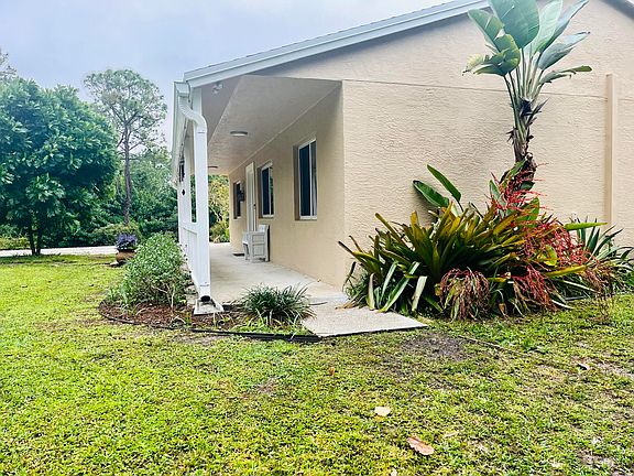 Come enjoy the quaint country lifestyle on this beautifully maintained property situated on a secluded road close to shopping, great schools, and public amenities. This single-family ranch-style concrete block home boasts improvements such as brand new roof installed in 2023, new A/C, new water filtration system with reverse osmosis, new stainless steel appliances, induction stove, new washer & dryer combo, and fresh paint. The home features vaulted ceilings, tile floors throughout and granite countertops, high-speed fiberoptic internet & coaxial cable, an above-ground hot tub nestled under a beautiful gazebo, fully fenced 1.15 acre lot with mature privacy hedges, an additional full size fridge in the garage, custom-built walk-trough pantry, spacious walk-in master closet, double master shower, raised garden beds, fruit trees, and poultry runs. The existing farm animals (6 egg-laying chickens and 2 rabbits) may be conveyed with the property at the buyer's option. CubCadet 46" riding tractor lawn-mower can be sold with the property at no additional cost.