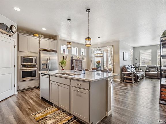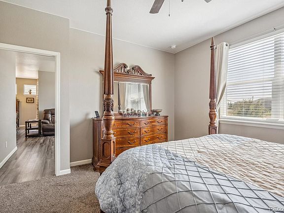 Wonderfully maintained LIKE NEW home in the Waterside Community of Todd Creek. This home comes with a fully fenced backyard, AC, all window treatments and beautiful stainless steel appliances. Also notice the nicely landscaped yard with gorgeous flowers, bushes and trees. Step inside and find a bright, open floor plan. The kitchen is open to the dining and living room to create ample living space. In the kitchen you will find a large pantry, stainless steel appliances and a large island. The dining room has 3 windows that provide natural light and give the room so much character. Cozy up to the gorgeous fireplace and enjoy all the comfort of this home. There is a bedroom in the front of the home as well as another bedroom/office down the hall. The Primary bedroom, which looks out to the private backyard, has a 5 piece bathroom and a large walk in closet. Enjoy the privacy of your backyard under the covered patio or the new oversized patio or walk out in the yard to enjoy views of the lake and/or the mountains! This home has it all and is ready for you to move in!