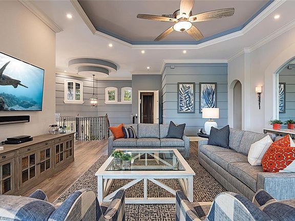 Beautifully renovated and furnished 2nd floor coach home with the best views Mediterra has to offer! Long lake and golf course views with a beautiful fountain within the lake. In addition to the extensive renovations and interior design, the property also features an elevator and automated hurricane shutters on the lanai. Privately located at the end of the street and just a short walk to the amenities of Mediterra Golf and Sports Clubs. The Monterosso neighborhood was recently repainted and new roofs installed in 2019. Multiple levels of membership are available at the award winning Mediterra golf and beach club. Buyer to assume CDD.