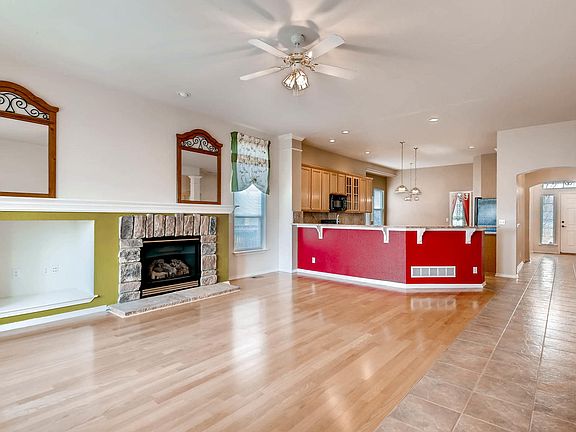 Well-maintained beautiful ranch home w/ 10' ceilings. Tons of upgrades. Higher-grade granite counter-tops & back splash in kitchen and baths. Hardwood and tile floors. Large great room has a gas fireplace w/stone surround. Kitchen has a breakfast bar, eat-in nook, walk-in pantry, 42" cabinets & under cabinet lighting. Large dining room. Master bedroom has walk-in closet. Five-piece master bath w/jetted tub. Drapes & blinds. All appliances incl refrigerator, washer, dryer & small refrigerator in basement. Water softener. Sump pump. Security system. Wired for internet, TV & telephone. New water heater. Two-car attached garage. Premium lot in a great location w/convenient short commutes to Buckley AFB, Anschutz & I-225, near public transit. Low maintenance, professionally landscaped w/perennial shrubs and flowers. Front yard lawn w/sprinkler system. Very private backyard, backs to canal & green space, flagstone patio & apple & Asian pear tree. A MUST SEE.