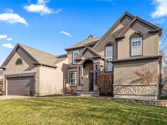 RARE FIND! Beautiful 1.5 story, first floor owner's suite with a BRAND NEW ROOF! Premier south JOCO location with LARGE corner lot and fully fenced backyard. Bright & natural light-filled great room with cathedral ceiling and soaring, floor to ceiling windows. Large finished basement with wet-bar area, plus a 4th non-conforming bedroom and full bath. Plenty of extra basement storage too. Fresh paint inside and out. Neutral colors throughout, double sided fireplace opens to great room and the eat-in kitchen/hearth room. Granite counters and white painted cabinetry with a center island for counter dining. Next to new furnace and A/C are under 3 years old. Second floor hosts 2 bedrooms, full bath and an additional loft/office space area. Convenient proximity to work and play with great schools too! This home is very spacious with room for everything and everyone. Just pack your bags and move right in!