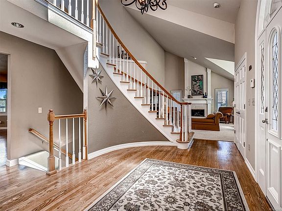 Prime location in the Estates! Views galore. Hike right out front your door with 2000 acres of open space. Grand entrance with open staircase and open floor plan with gourmet kitchen with all the bells and whistles. Walk out to stunning wrap around deck with mountain views and downtown Denver views! Huge master suite with private balcony and more views. Each bedroom boasts its own ensuite with walkin closets. Spacious walk out basement with game room and tv room and bedroom and gym.