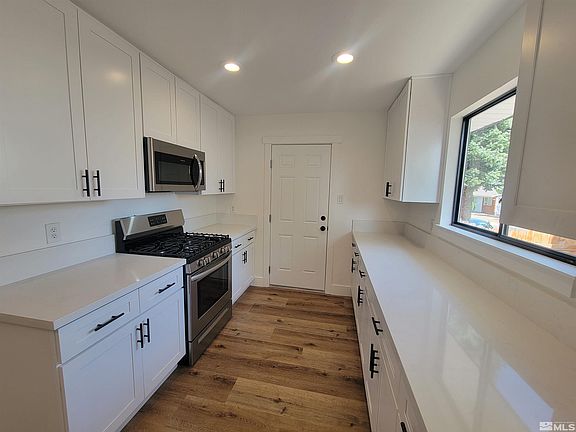 Great location, top of Old Northwest Reno. Beautifully remodeled 3 bedroom, 2 bath, nice floor plan. Great house to host family gatherings or get togethers. New appliances, countertops, lighting, flooring, and interior/exterior paint. New carpet in the enclosed porch room! Easy access to I-80, McCarran, shopping and schools., Beautiful view of the mountains from the family room and back yard!!