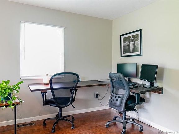Convenient to anywhere in Southern Indiana and Louisville. Brick Ranch with new exterior paint (2021), 2 car attached garage, Kitchen was remodeled (2016) with awesome HAAS cabinets, tall to the ceiling, lazy susan, magnetic knife holders, hall bath, Pergo Max Laminate flooring, endless water heater and new windows & doors were installed. Also, all exterior walls (on the interior side) were taken down, new insulation and new drywall were installed. In 2020/2021 a new roof was installed, Main Bedroom Bath was remodeled, all interior painted, Floating Desk was installed in the Living Room, new Doors installed in Kitchen on Laundry Closet, Curb Bumpers were installed, exterior solar lights and stationary door of sliding door to patio was replaced. The fireplace is gas and has LP tanks to supply this LP gas. This home has been loved and it shows!! GE smooth top electric stove, microwave, dishwasher are all gun smoke color...Bluetooth Door Bell, TV mounts stay (TVs do not stay). Fridge in garage does NOT stay. Make best contract..no calls for highest and best..no escalation clause..seller needs at least 24 hours to review contract, but can make decision on contracts anytime during that period. In the event the home doesn't appraise for the purchase price, buyer will provide an addendum with proof of funds (letter from bank) stating the amount the buyer is willing to pay above appraisal amount.